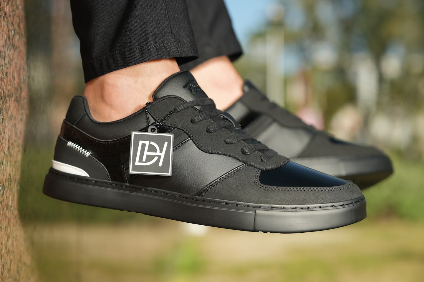 - Derek Hough's signature "DH" logo on the heel
